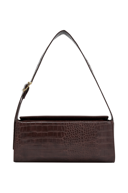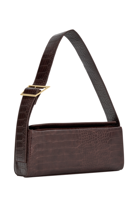 Maria Faux Leather Crocodile Shoulder Bag - Chocolate
