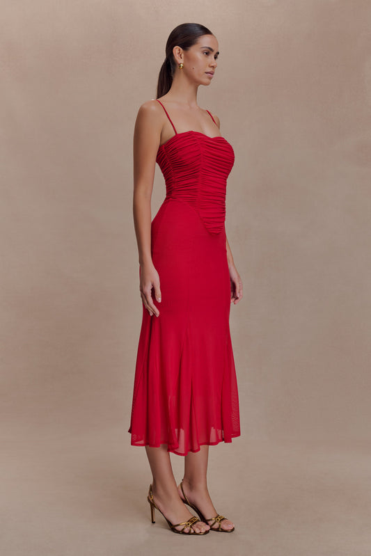 Sylvie Lurex Hankie Midi Dress - Wine