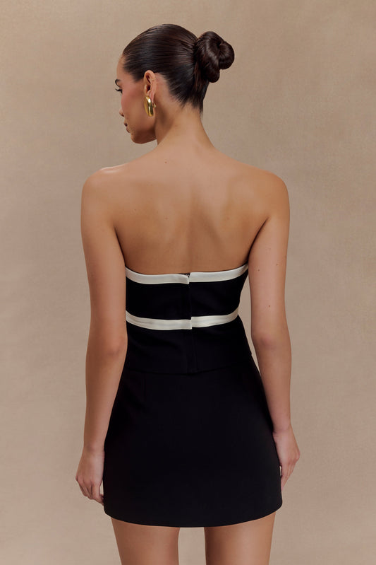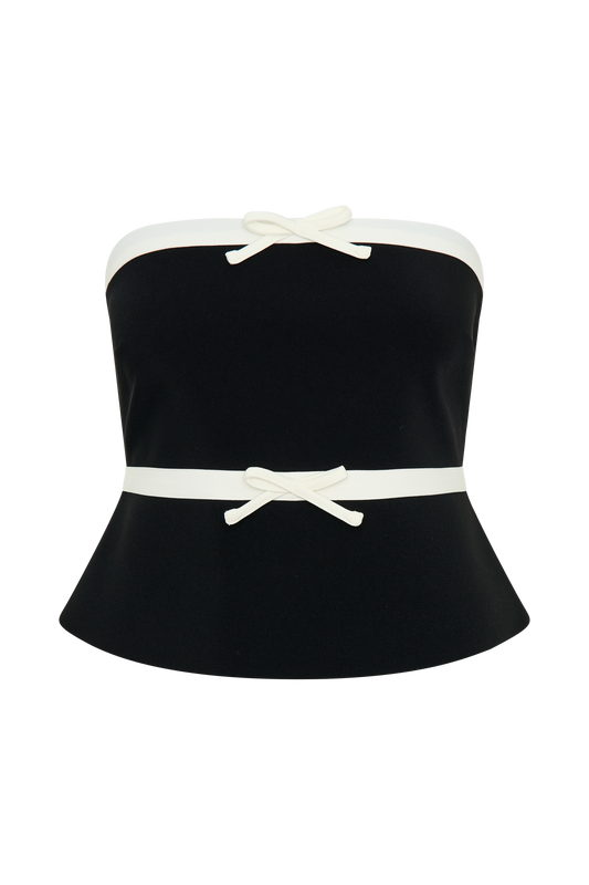 Aisha Strapless Suiting Top With Contrast Bows - Black & White