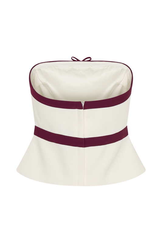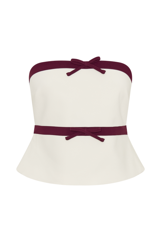 Aisha Strapless Suiting Top With Contrast Bows - Ivory