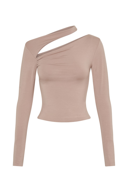 Modal Long Sleeve Top With Cut Out - Mushroom