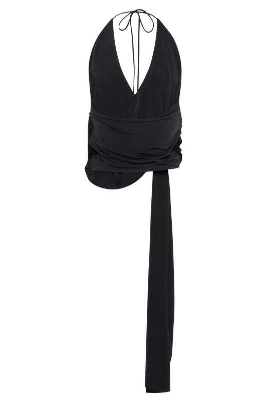 Tyla Draped Slinky Halter Top - Black