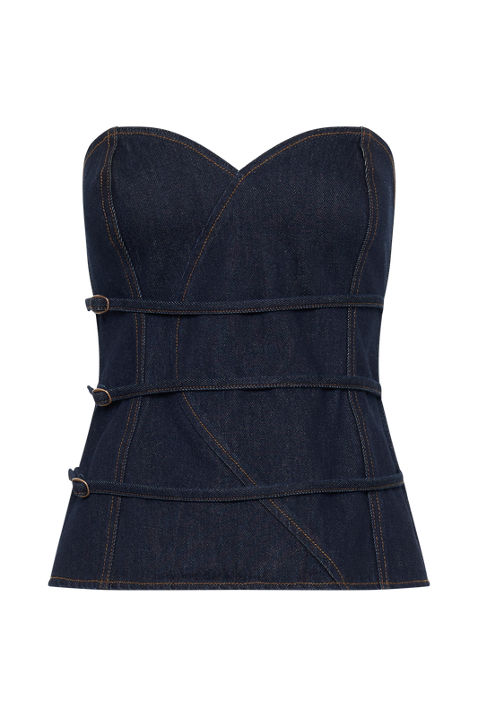 Sylas Strapless Buckle Denim Top - Indigo Blue