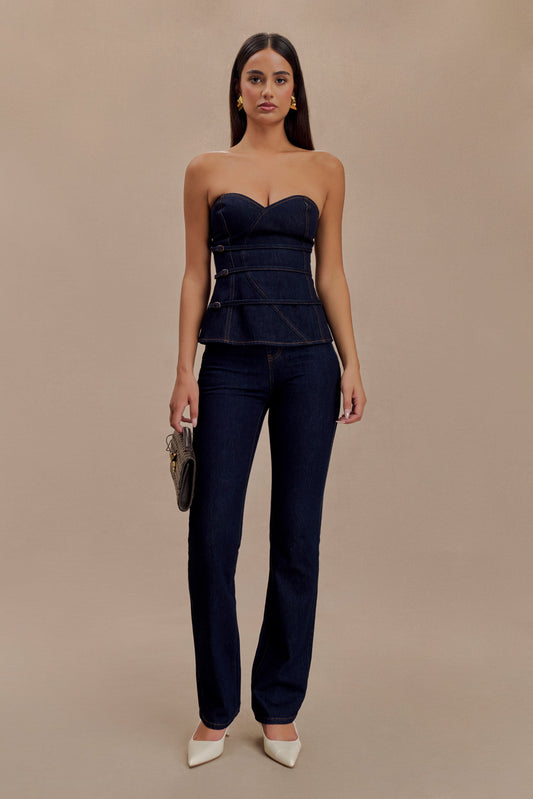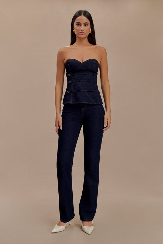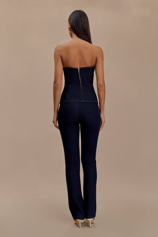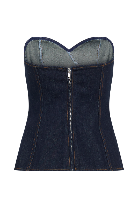 Madelyn Strapless Longline Denim Top - Indigo Blue