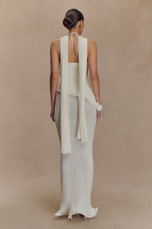 Elma Lurex Knit Halter Maxi Dress - Silver