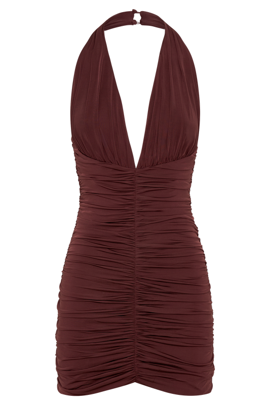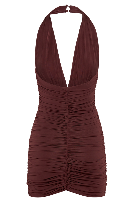 Fleur Ruched Slinky Mini Dress - Mahogany