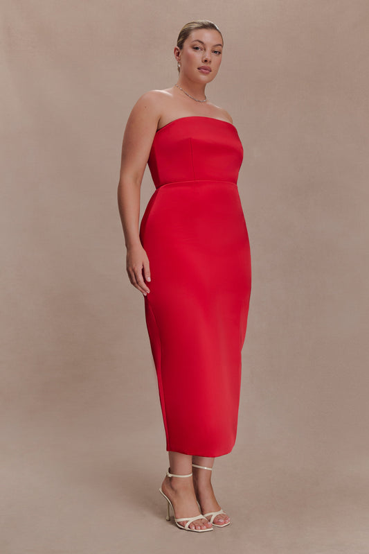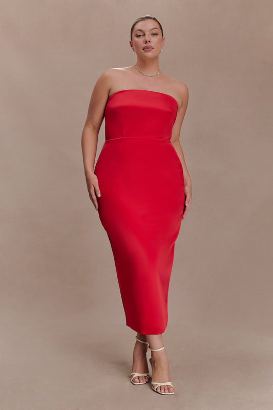 Ophelia Peplum Satin Maxi Dress - Red