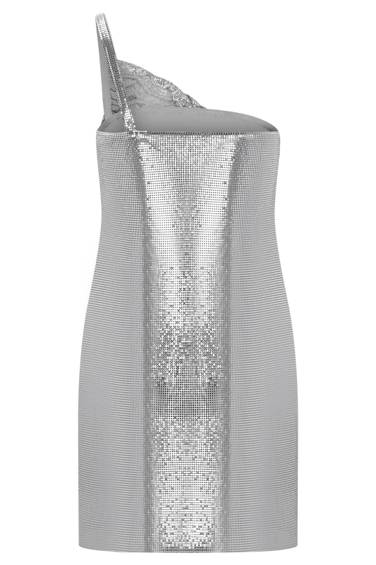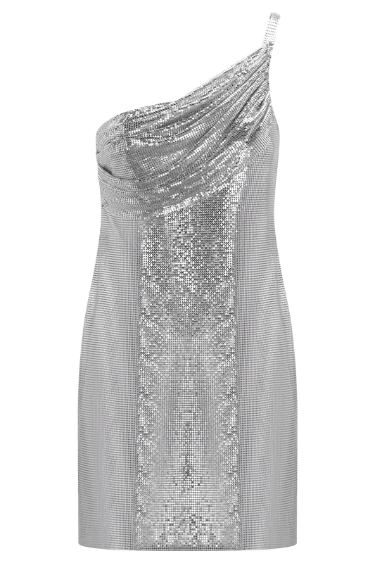 Lyle One Shoulder Glow Mesh Mini Dress - SilverOne Shoulder Glow Mesh Mini Dress - Silver Regular price £145Unit price per