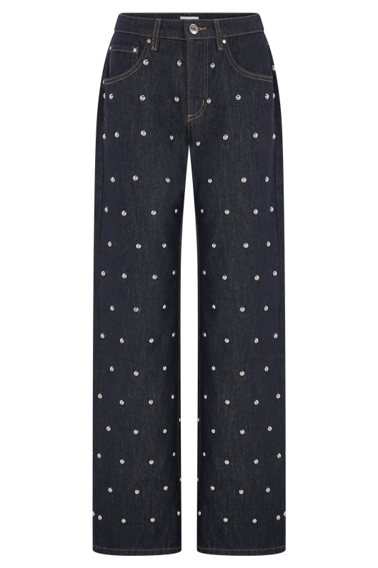 Alima Mid Rise Stud Denim Jeans - Washed Indigo Blue