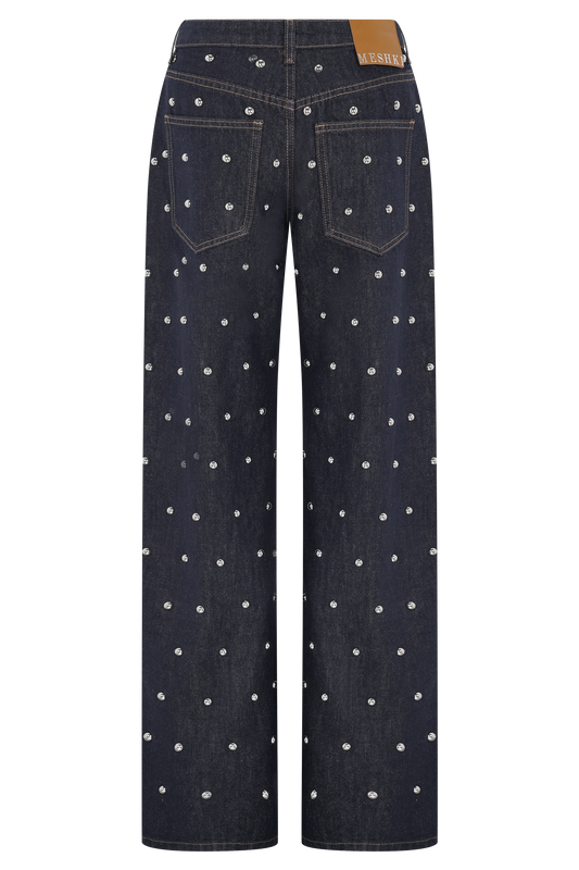 Mid Rise Stud Denim Jeans - Washed Indigo Blue
