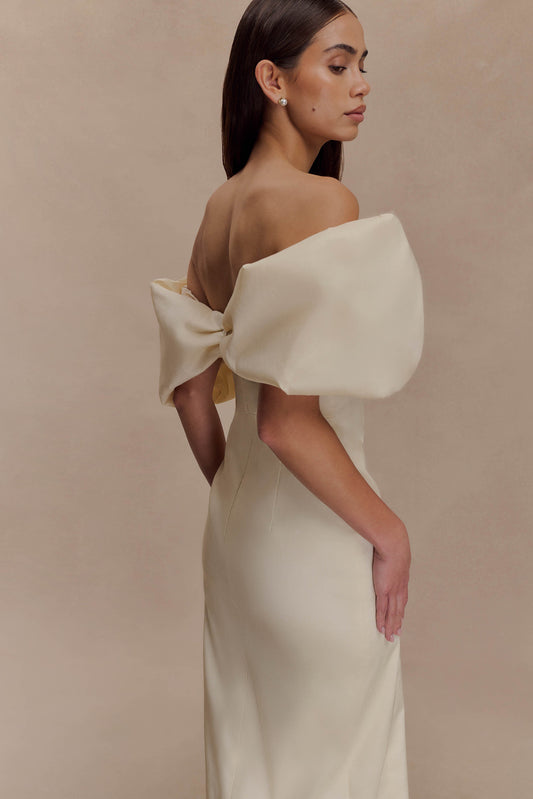 Dalia Off Shoulder Satin Maxi Dress - Lemon