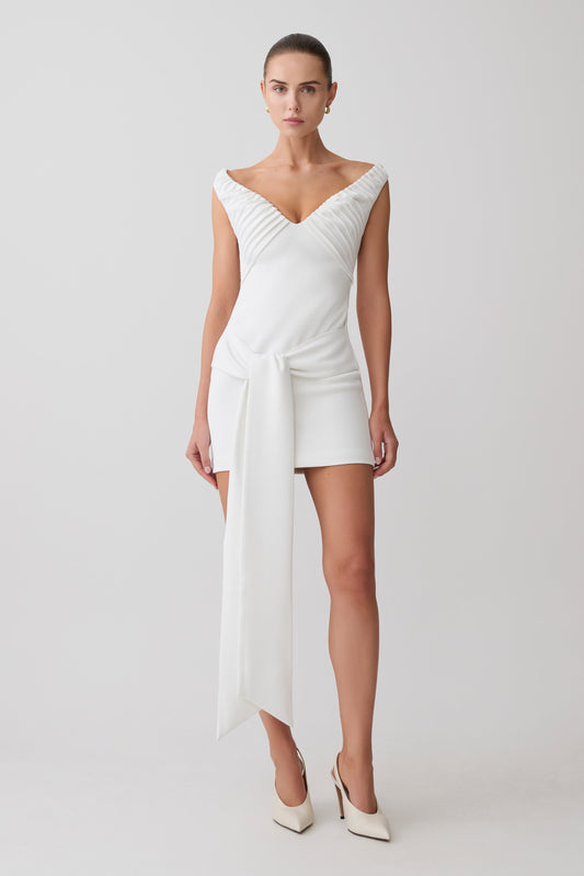Aphrodite Off Shoulder Crepe Mini Dress - Ivory