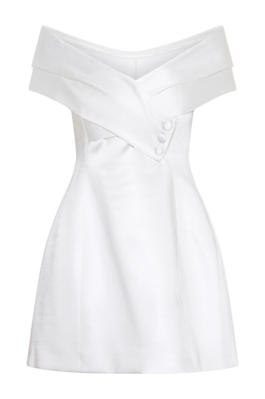 Helena Tweed Off Shoulder Mini Dress - White Check