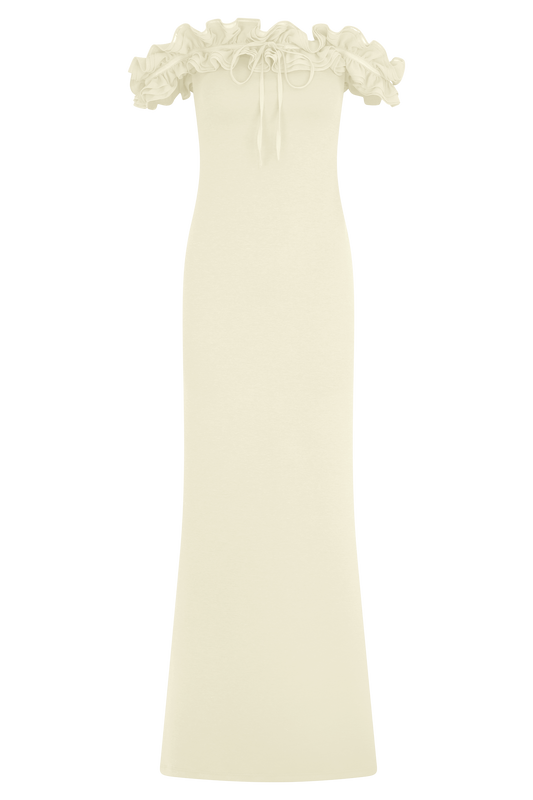 Nova Ruffle Off Shoulder Maxi Dress - Ivory