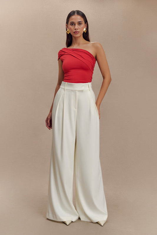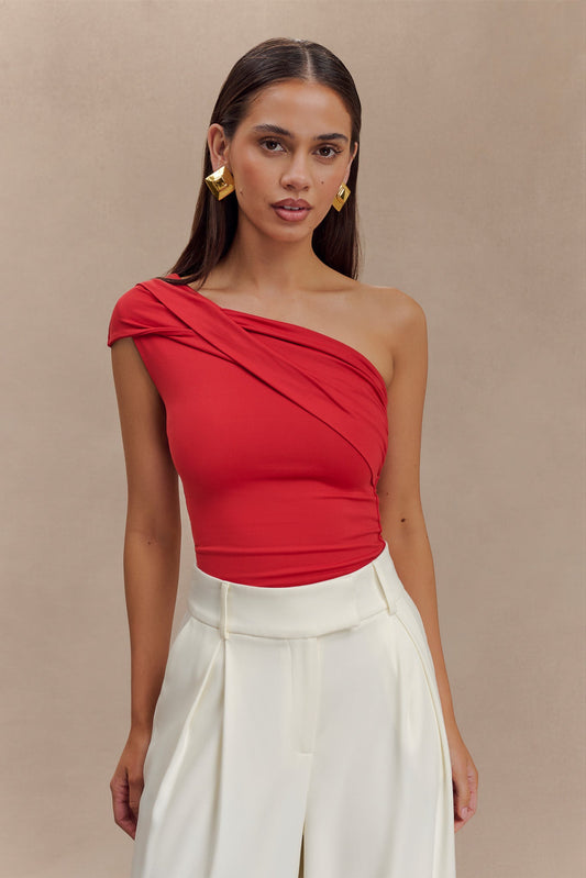 One Shoulder Recycled Nylon Twist Top - Ruby