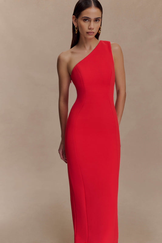 Milena One Shoulder Crepe Maxi Dress - Red