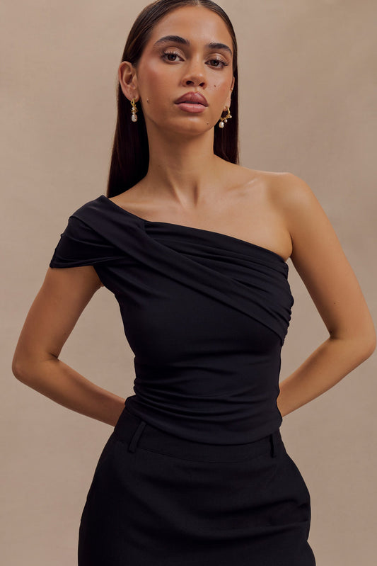 Solene One Shoulder Recycled Nylon Twist Top - Black