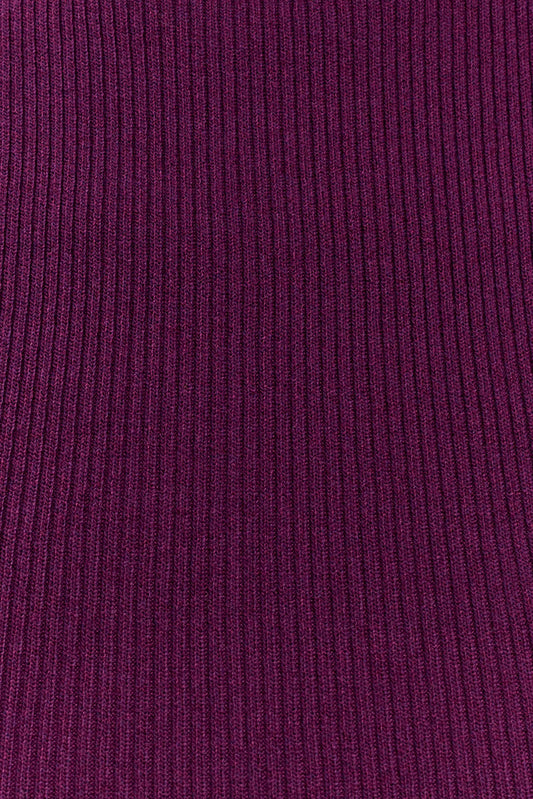 Ribbed High Waisted Pants With Wire Hem - Plum