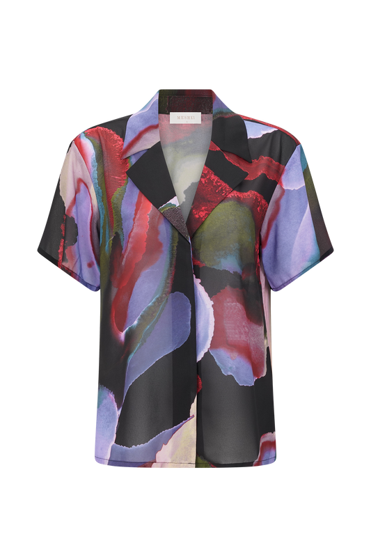 Chiffon Short Sleeve Shirt - Multi Fluid Reverie Print