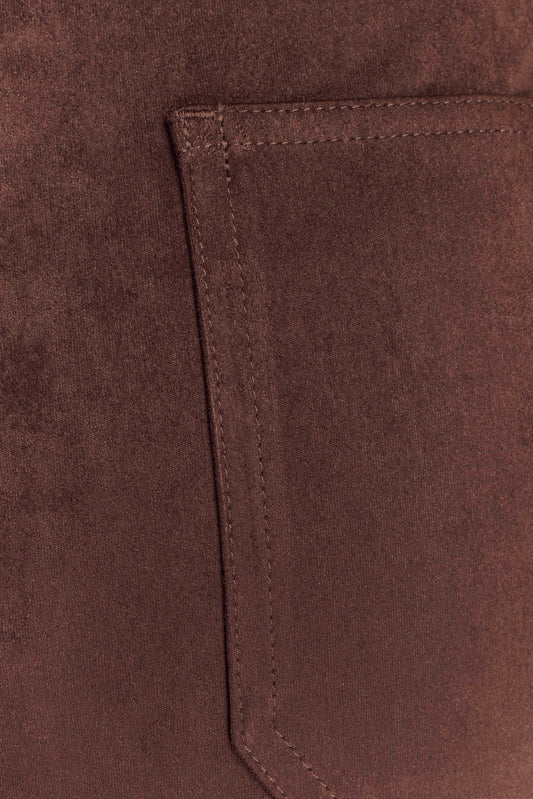 Faux Suede Belted Denim Wide Leg Jeans - Indigo Blue