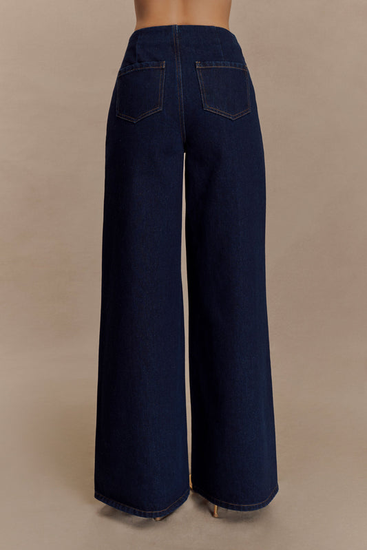 Jen Wide Leg Flare Denim Jeans - Dark Blue