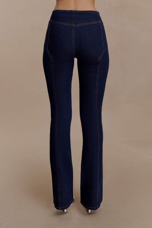 Paneled Flare Jeans - Indigo Blue