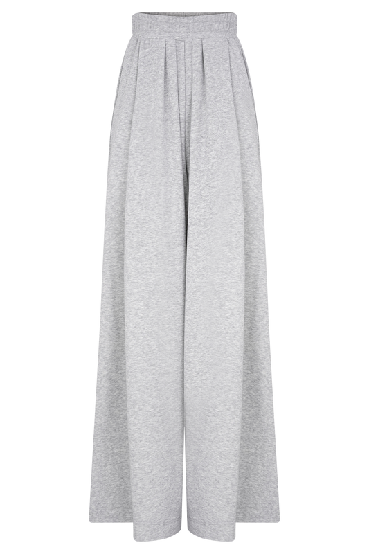 Gathered Wide Leg Jogger - Light Grey Marle