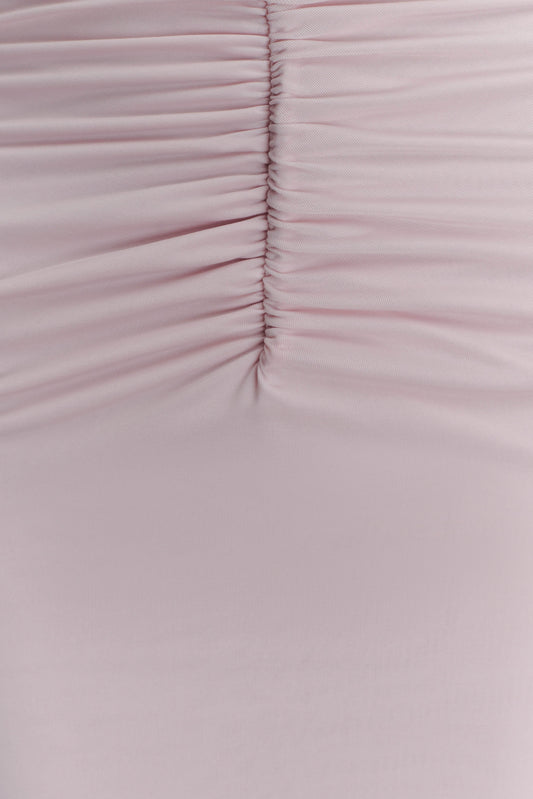 Slinky And Mesh Maxi Dress - Pale Pink