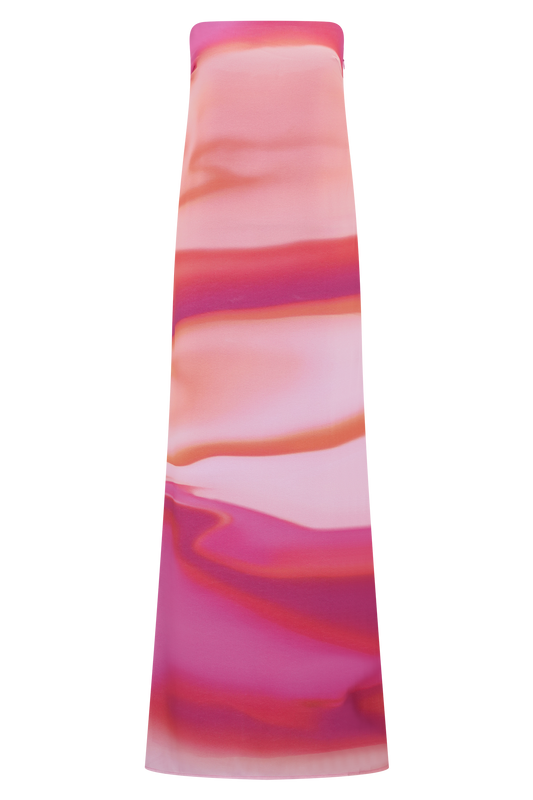 Amaya Strapless Chiffon Maxi Dress - Pink Sunset Print