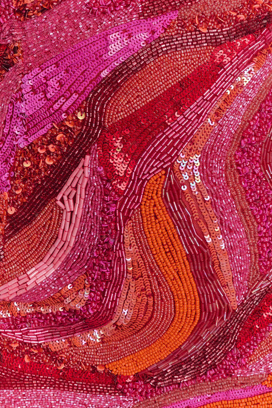 Hand Beaded Mini Dress - Pink Swirl Print