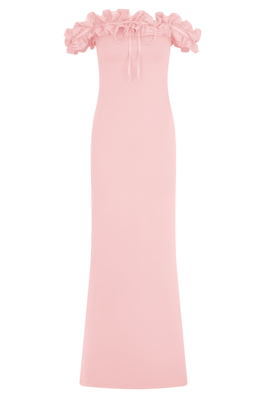 Nova Ruffle Off Shoulder Maxi Dress - Ballet Pink