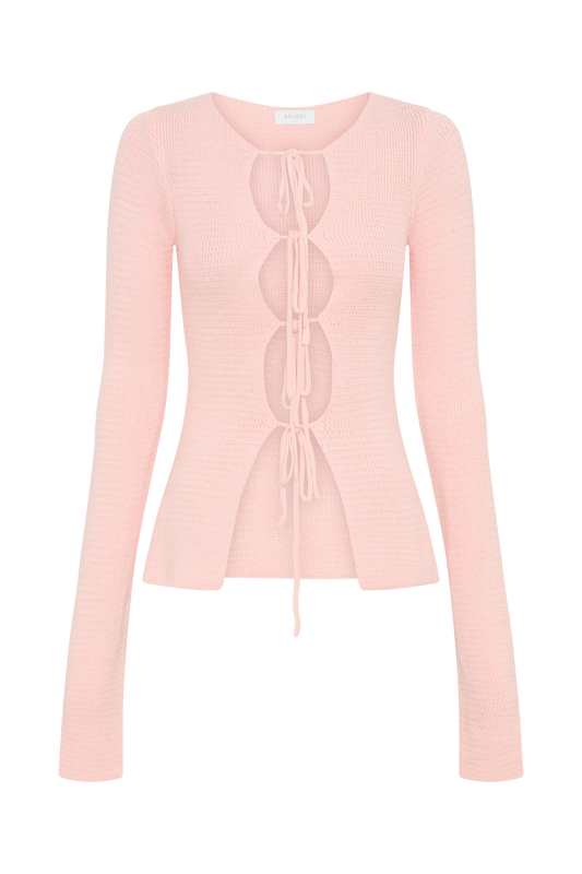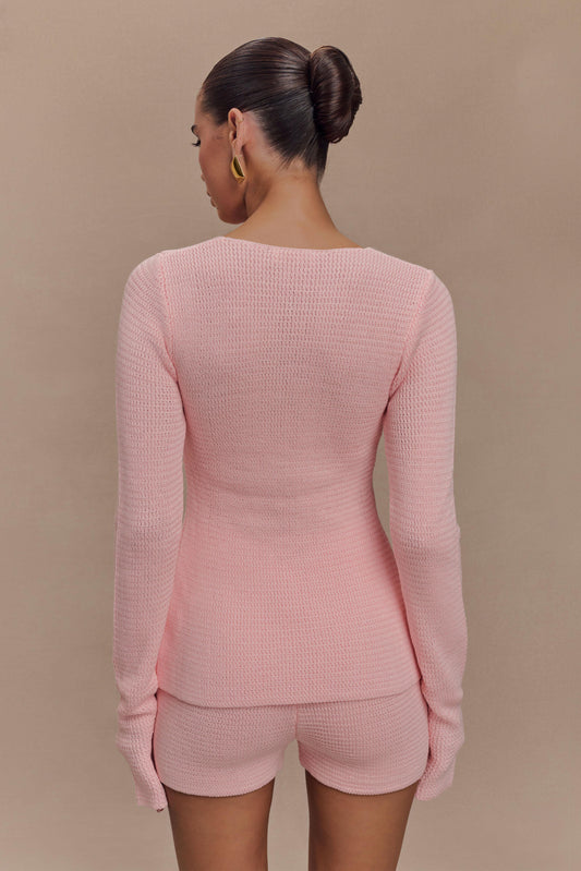 Knit Tie Long Sleeve Top - Baby Pink