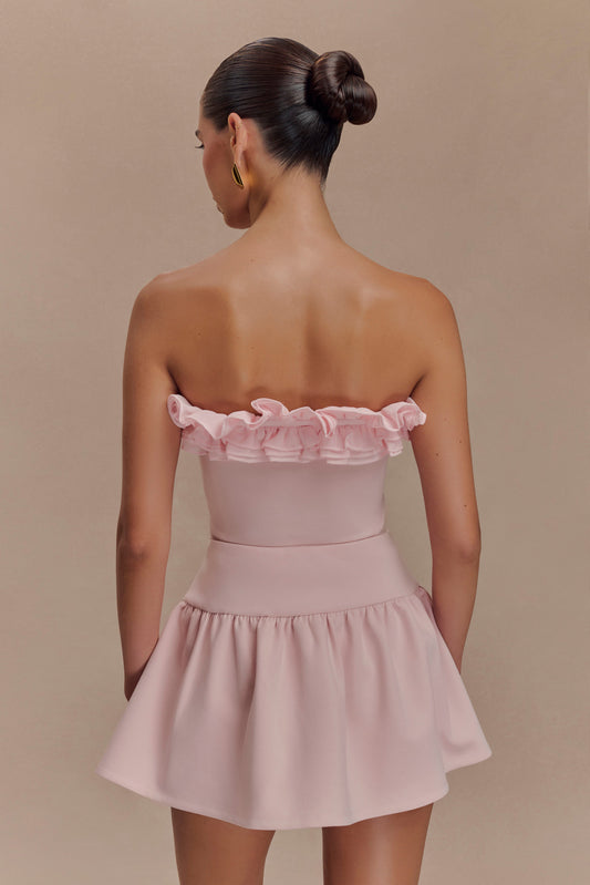 Rose Strapless Bow Mini Dress - Powder Pink