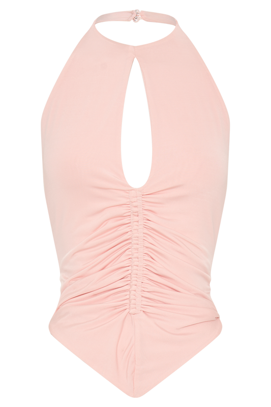 Slinky Ruched Halter Top - Pale Pink