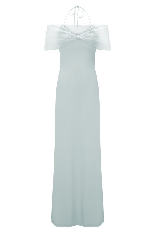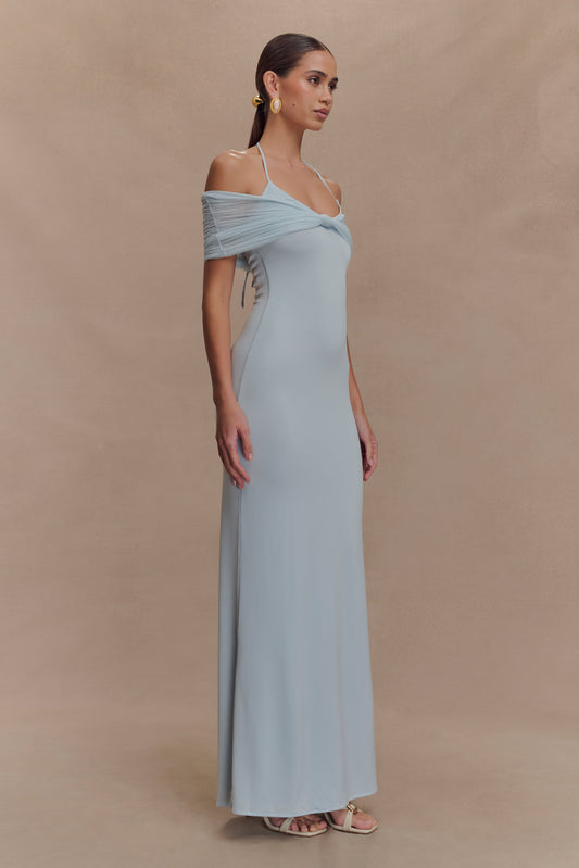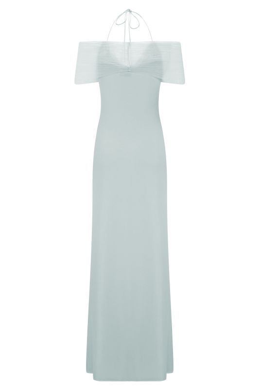 Bernadina Mesh And Slinky Halter Maxi Dress - Pale Blue