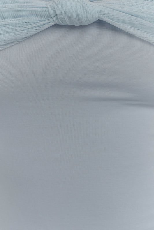 Mesh And Slinky Halter Maxi Dress - Pale Blue