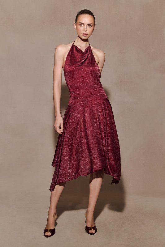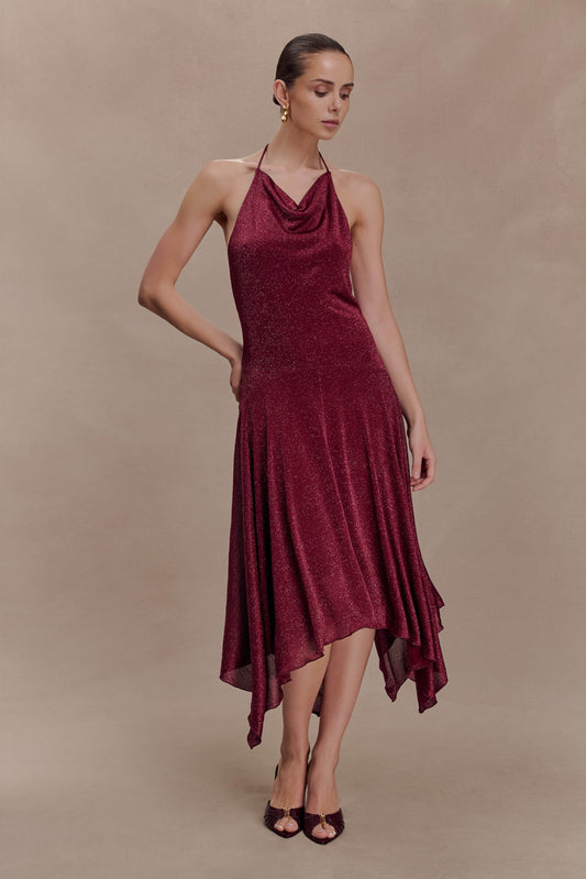 Sylvie Lurex Hankie Midi Dress - Wine