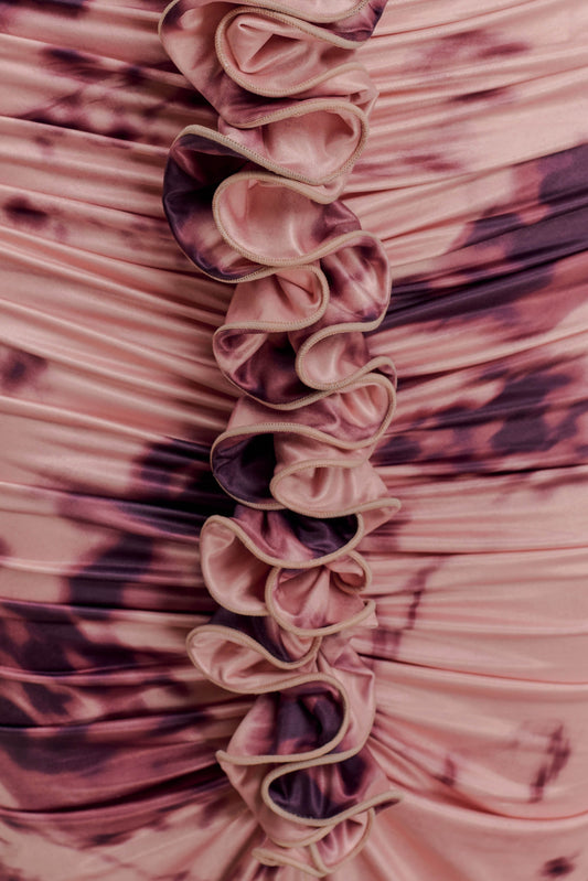 Slinky Ruffle Maxi Dress - Pink Blurred Floral Print