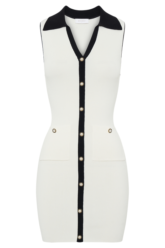 Veruka Collared Contrast Knit Mini Dress - Ivory