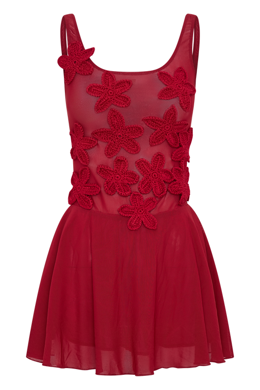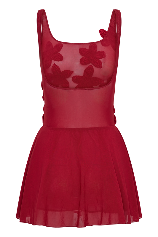 £125-48% Off Sale price £65Unit price / per20% OFF AT CARTMelanie Mesh Mini Dress With Flowers - Ruby