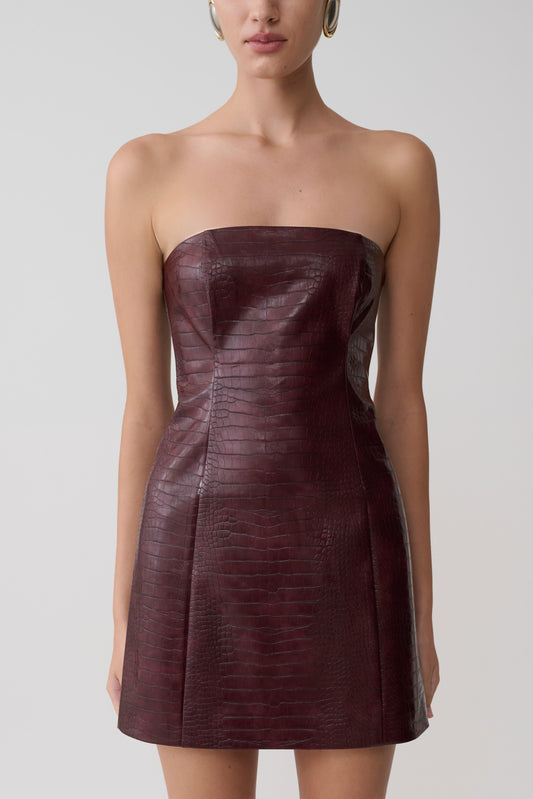 Anouk Faux Leather Strapless Mini Dress - Merlot