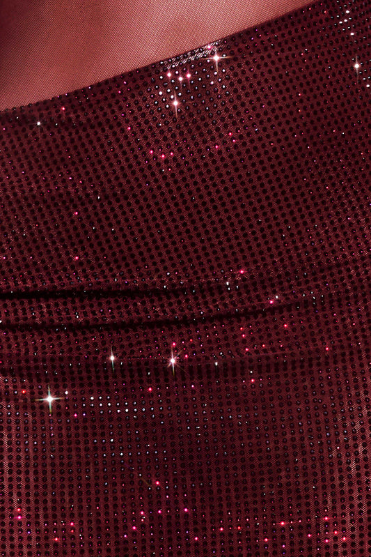 One Shoulder Mesh Mini Dress - Mahogany
