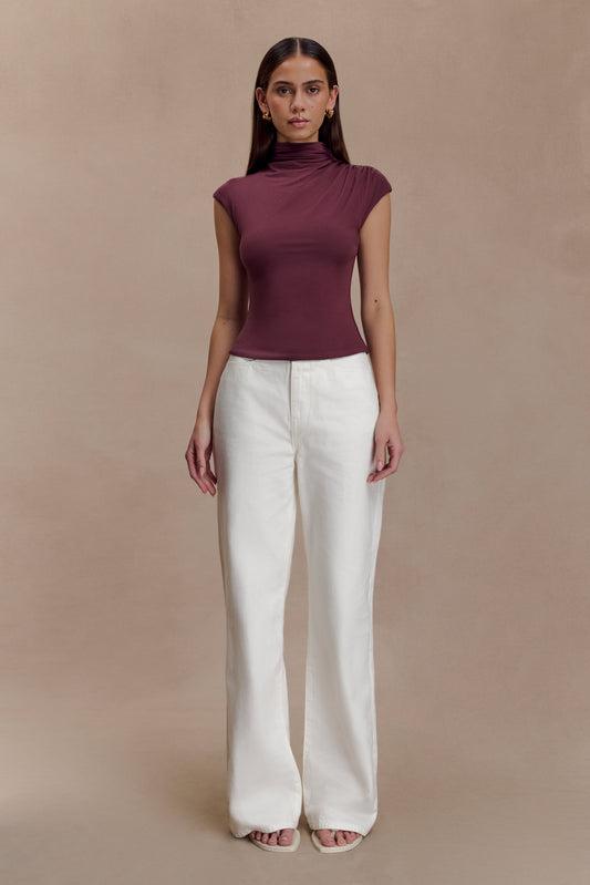 Freesia High Neck Sleeveless Top - Mahogany