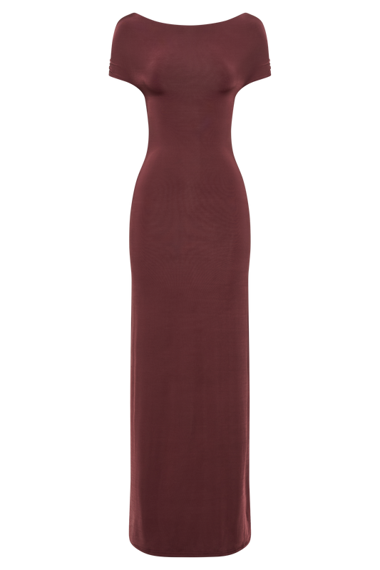 Imogen Off Shoulder Slinky Maxi Dress - Mahogany