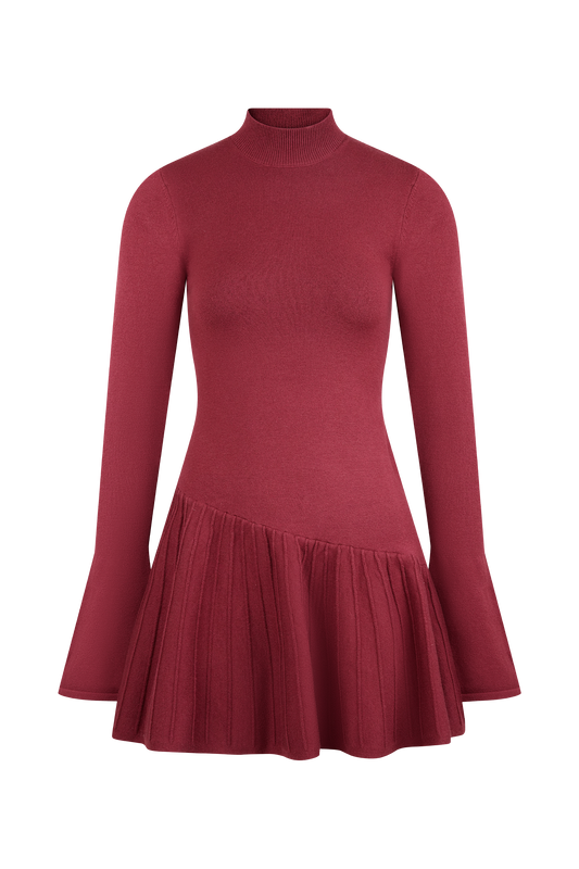 Blair Knit Mini Dress With Pleats - Merlot