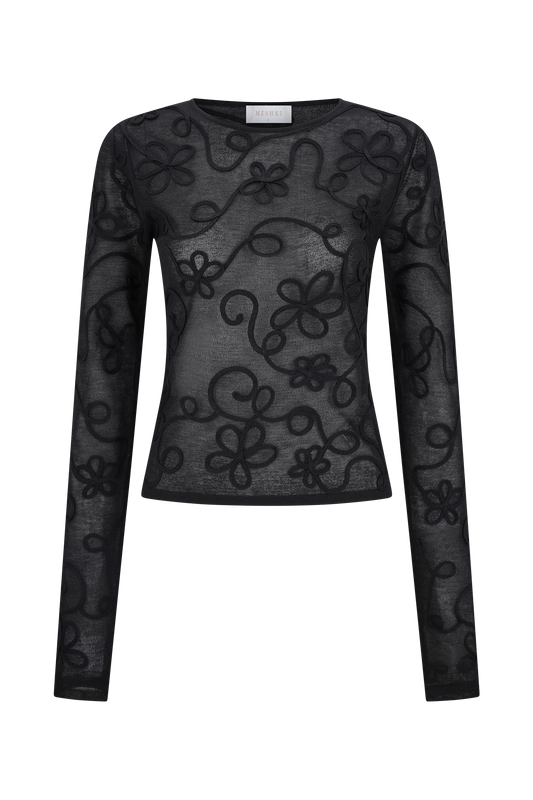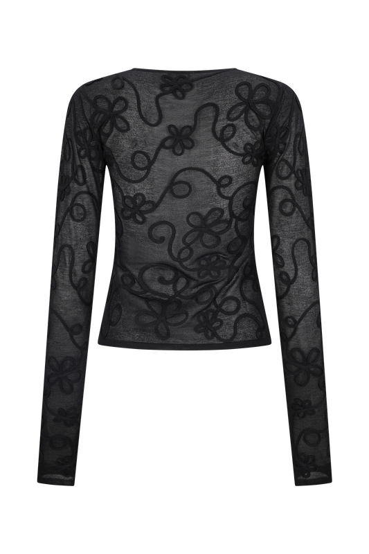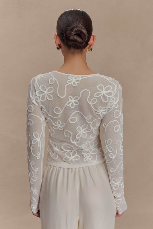 Omari Embroidery Long Sleeve Knit Top - Ivory