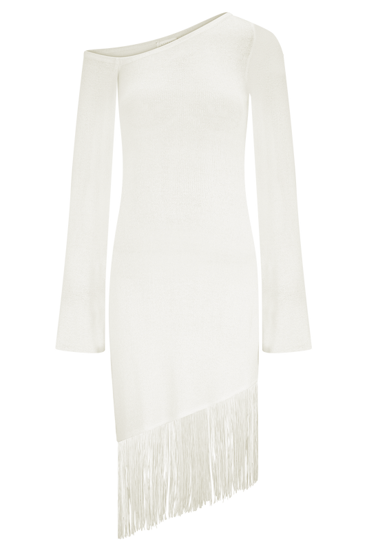 Kayden Fringe Off Shoulder Knit Mini Dress - Ivory