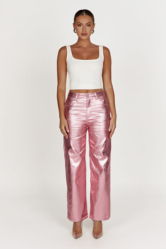 Regular price£75-55% Off Sale price £34Unit price / per20% OFF AT CART -55% OffMinnie Metallic Straight Jean - Metallic Pink