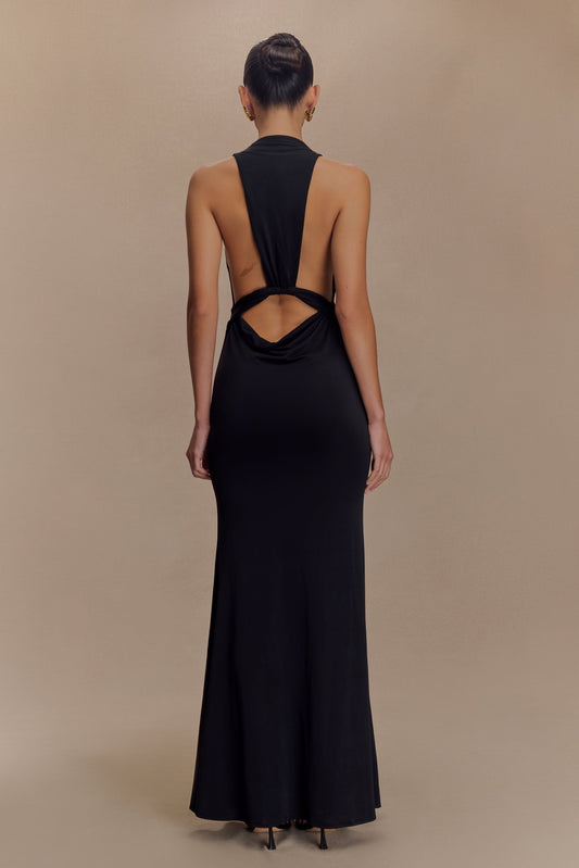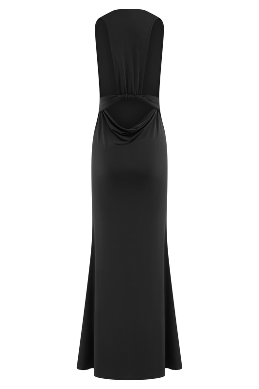 Lucia Satin Cut Out Maxi Dress - Black