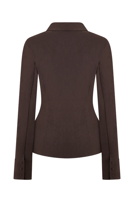 Cotton Beaded Tie Shirt - Dark Espresso